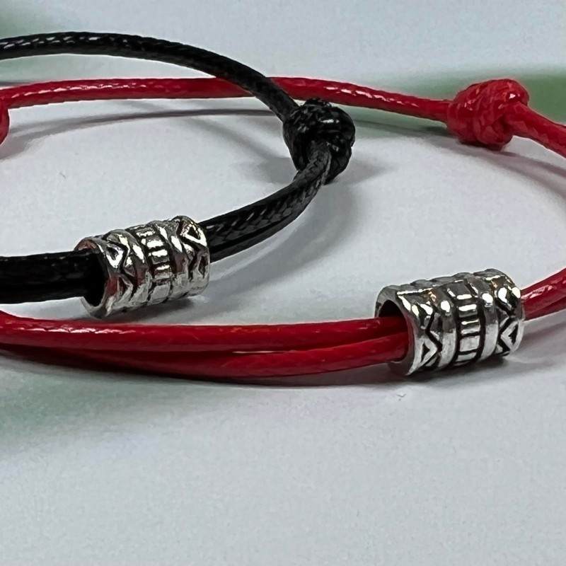Bracelet tibétain de la chance rouge avec rouleau Fengshui. Kit de 2, noir et rouge. Porte bonheur Feng Shui.
