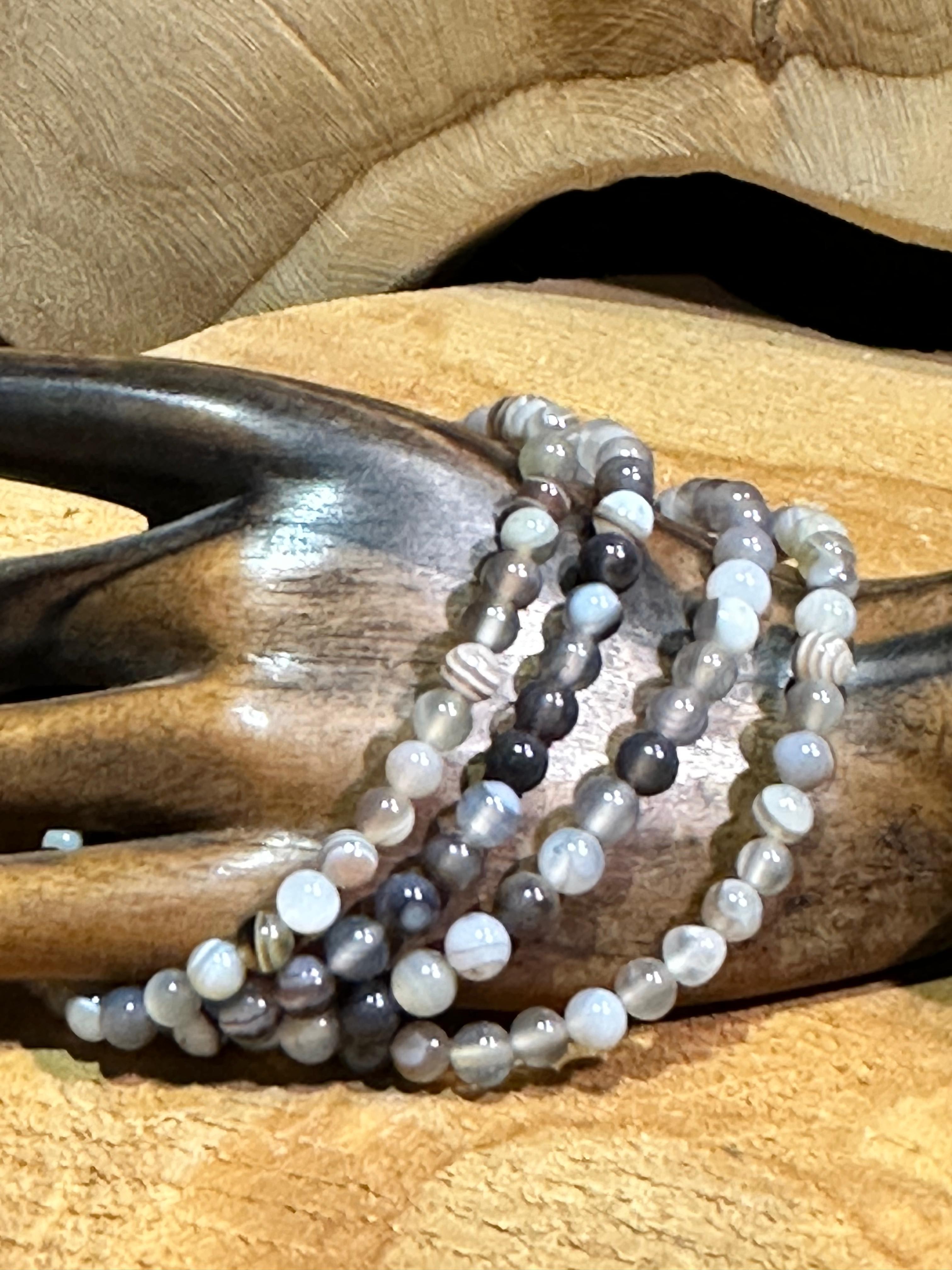 Ce bracelet monté sur élastique avec perles d’agate de 4 mm est un allié subtil d’équilibre émotionnel et de stabilité énergétique.