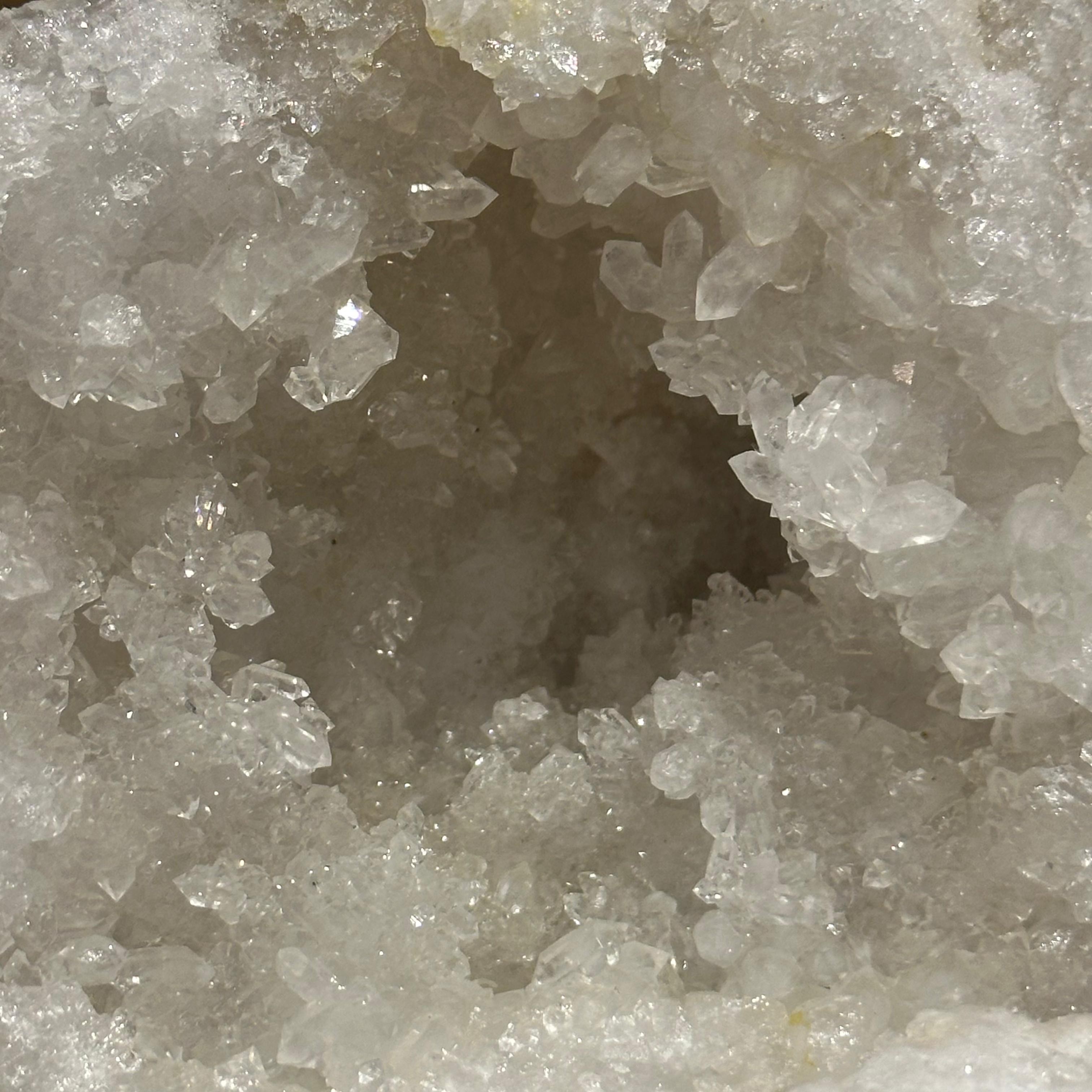 Déposez vos pierres à l'intérieur de la géode, refermez la et laissez vos pierres et cristaux profiter des énergies du cristal de roche, le cristal majeur servant à amplifier les énergies et effets de tous les autres cristaux.