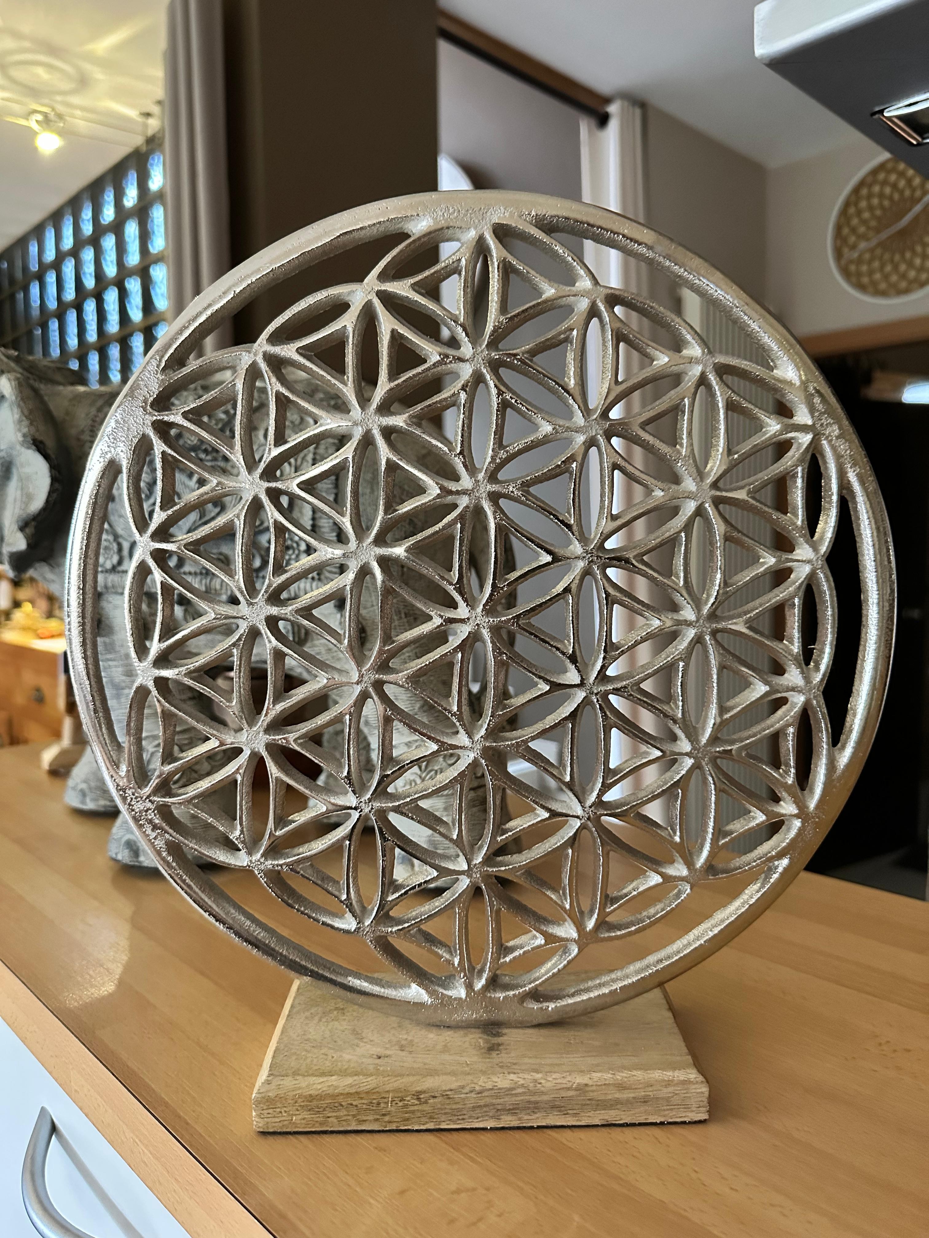 Placer une Fleur de Vie dans son espace permet de purifier les énergies, d’harmoniser l’environnement et de favoriser la paix intérieure.