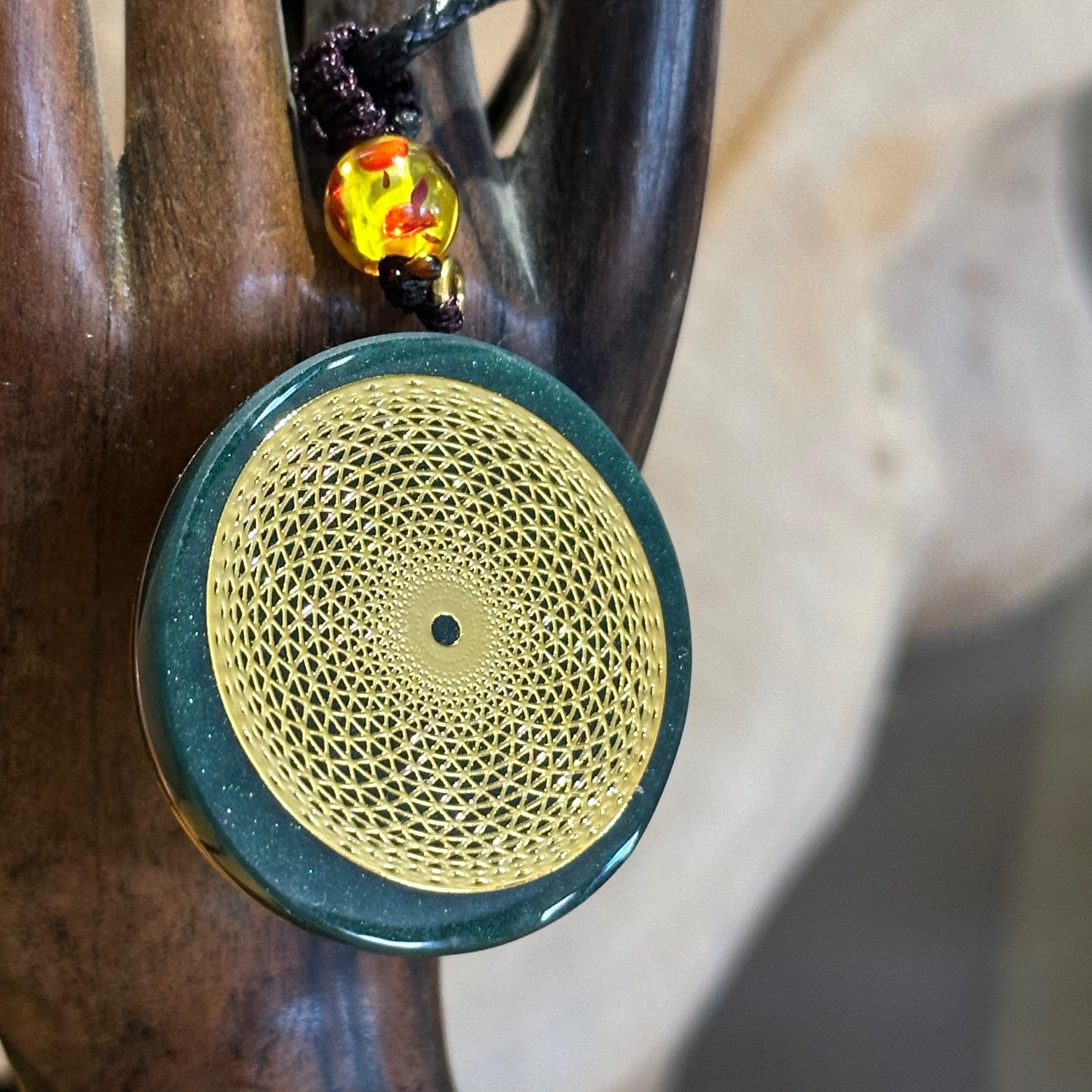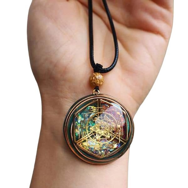 Ce magnifique pendentif en orgonite artisanale est conçu pour équilibrer vos champs énergétiques et favoriser la circulation harmonieuse des vibrations vitales.
