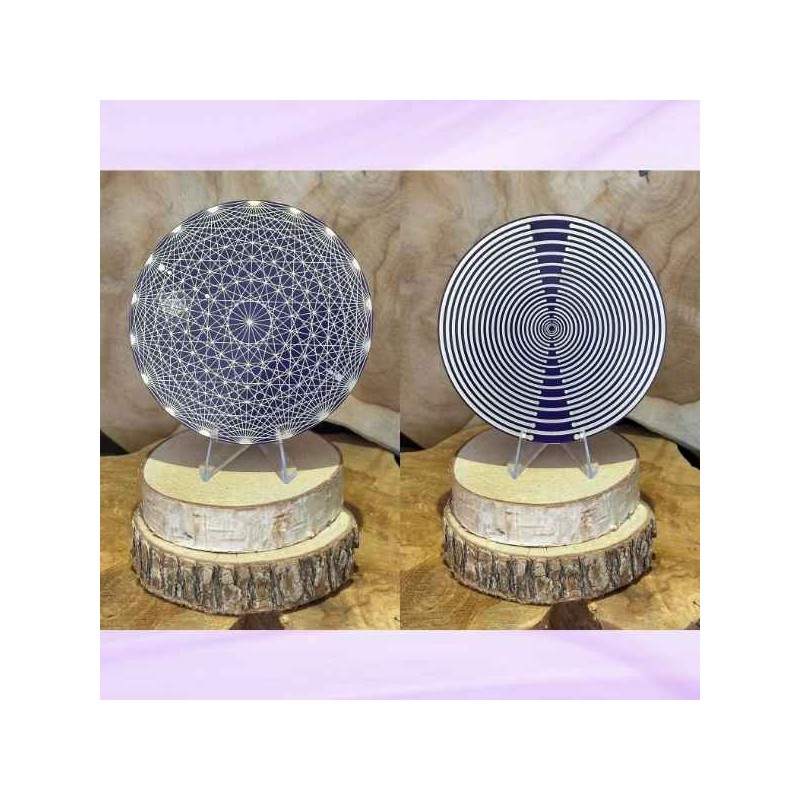 Sa structure concentrique agit comme une antenne passive, capable d’interagir avec un large spectre de fréquences naturelles présentes dans l’environnement. Chaque face (recto / verso) présente un motif spécifique, contribuant à une polarisation énergétique complémentaire.